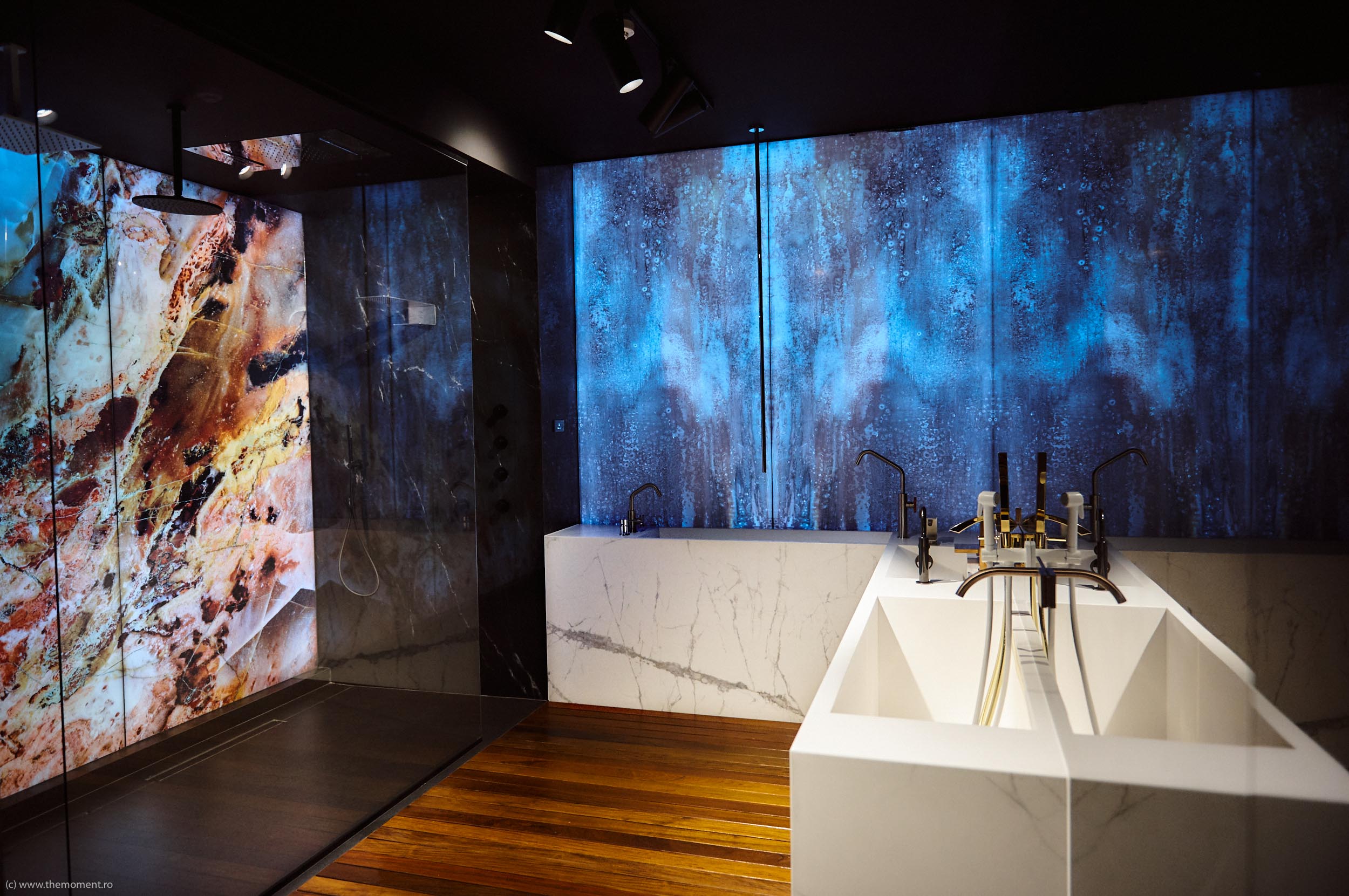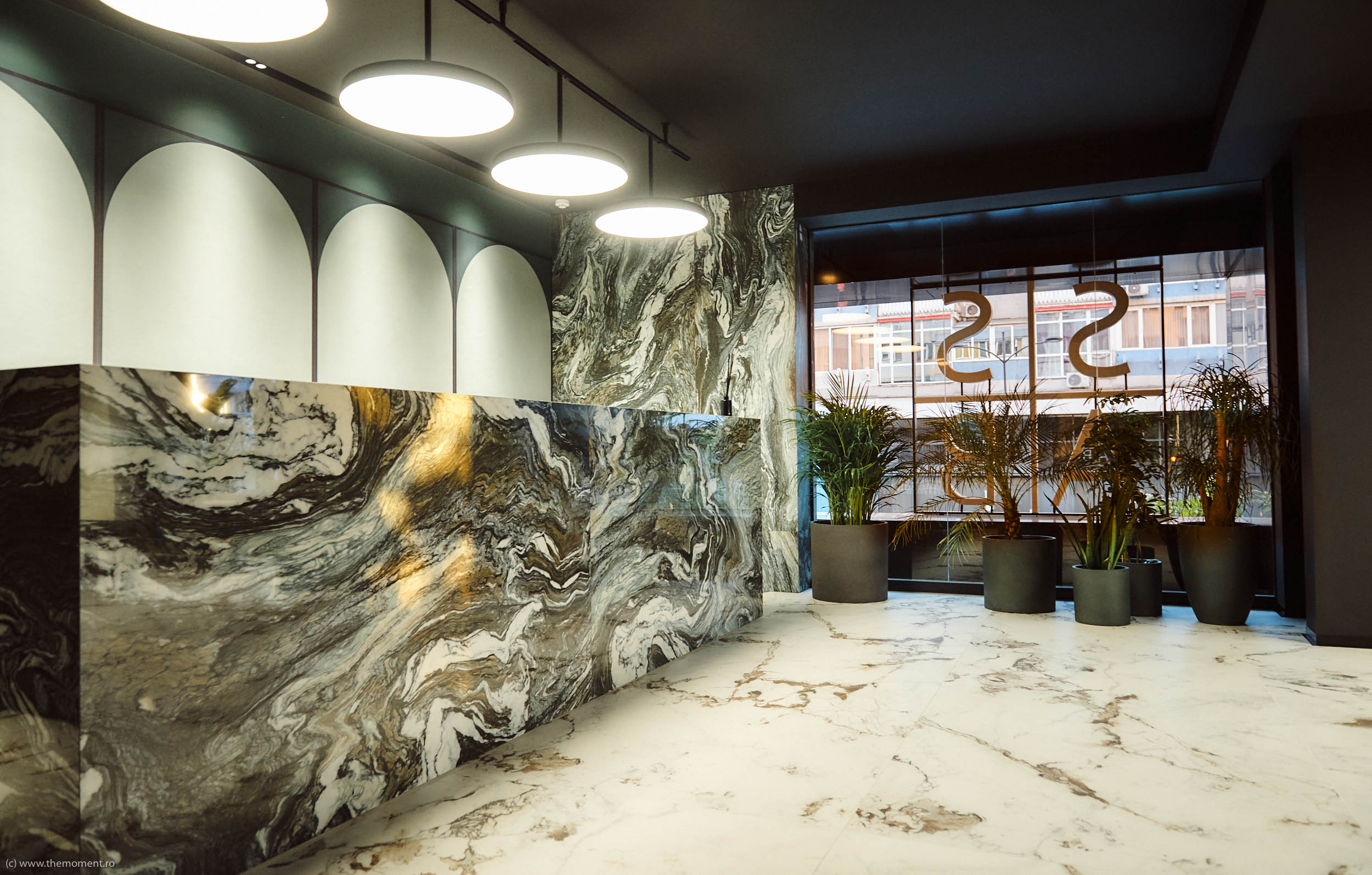 Avand o abordare total atipica pentru un showroom, spatiul este gandit ca un flux continuu care conduce utilizatorul printr-o serie de experiente vizual senzoriale. Zona intrarii este in directa legatura cu zona pietonala din fata, separatia fiind una foarte subtila, de sticla, astfel aproape diluand complet bariera fizica cu exteriorul si creand un punct focal, un centru de atenție, menit sa actioneze ca un semnal, dar in acelasi timp face introducerea intregului concept si ofera un preview al spatiului principal, care urmeaza sa fie descoperit de vizitatori.